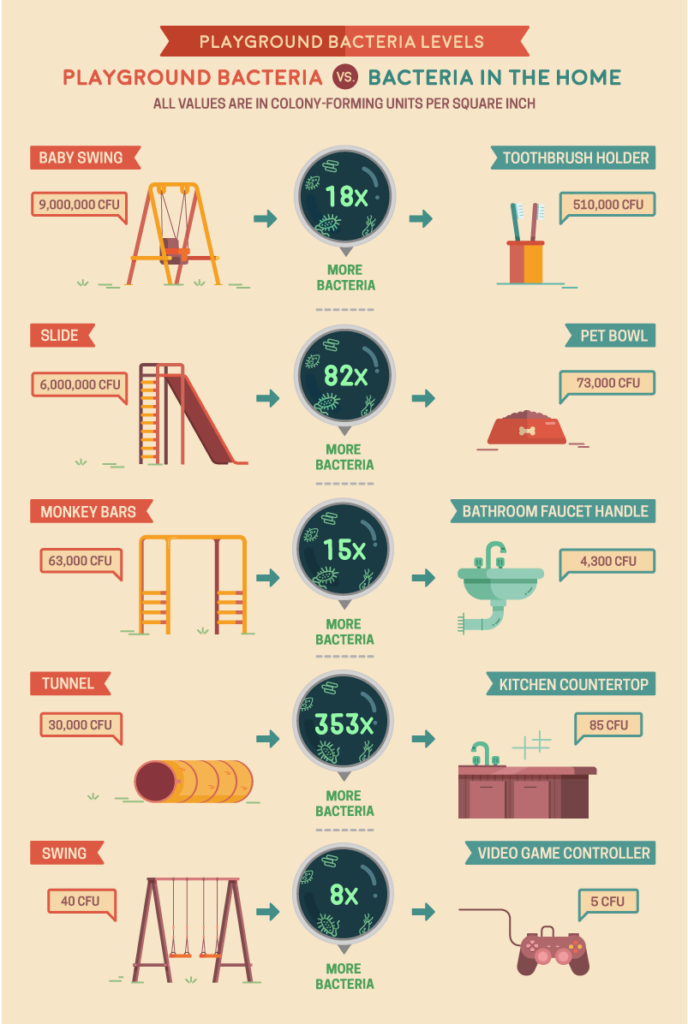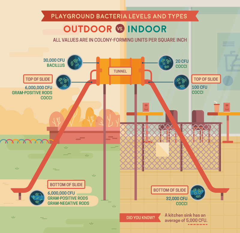 Unbeknownst to many, playground equipment was the No. 1 contaminated surface.